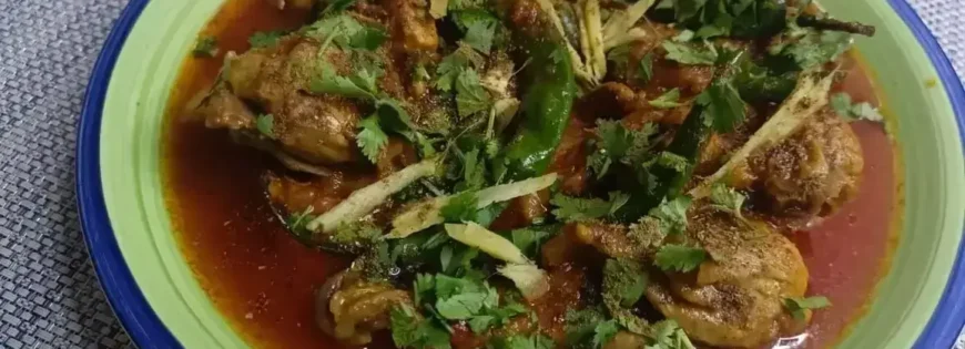 Heat oil, add onions, and sauté. Add chicken karahi pieces until the color changes. Then add ginger paste, and green chilies very good for 5 – 7 minutes.